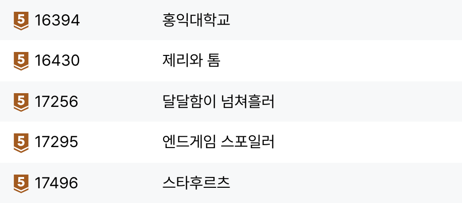| [BOJ] Bronze Ⅴ, IV - Day 13 (0) | 2022.01.09 |
