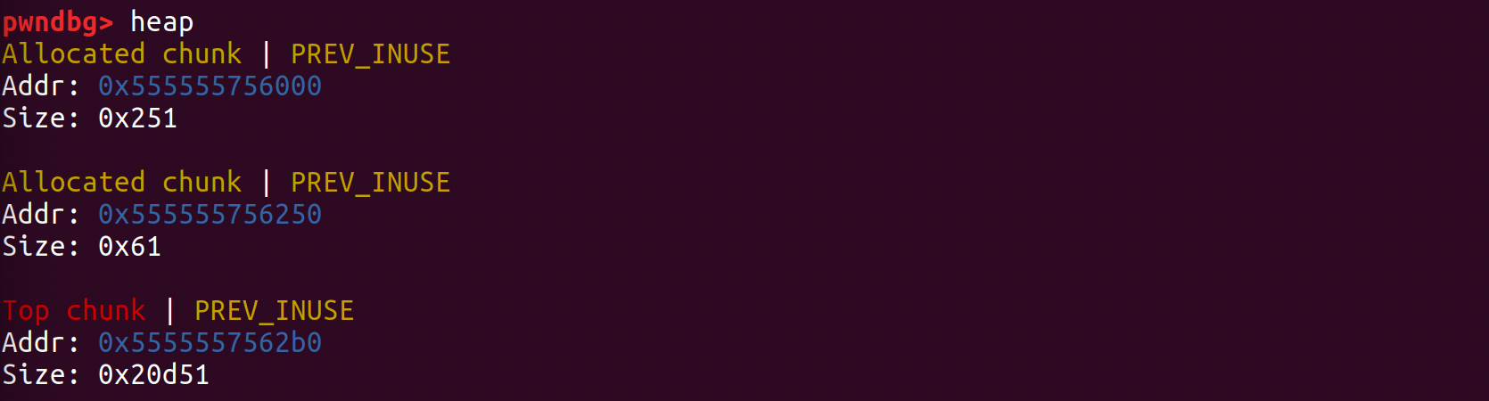 - heap 명령어로 청크들의 정보를 조회하면 아래와 같다.