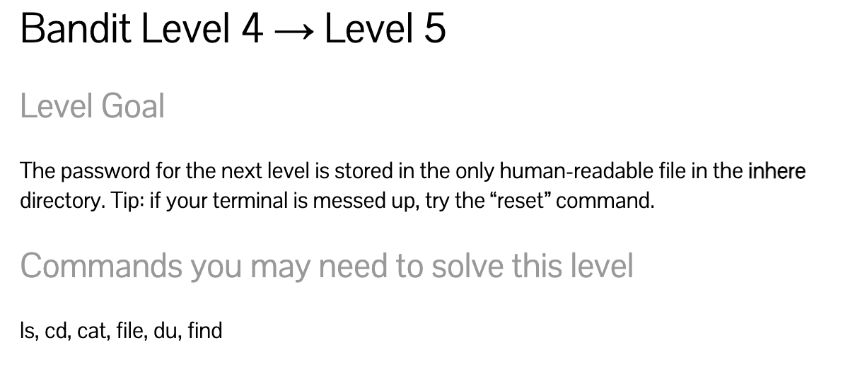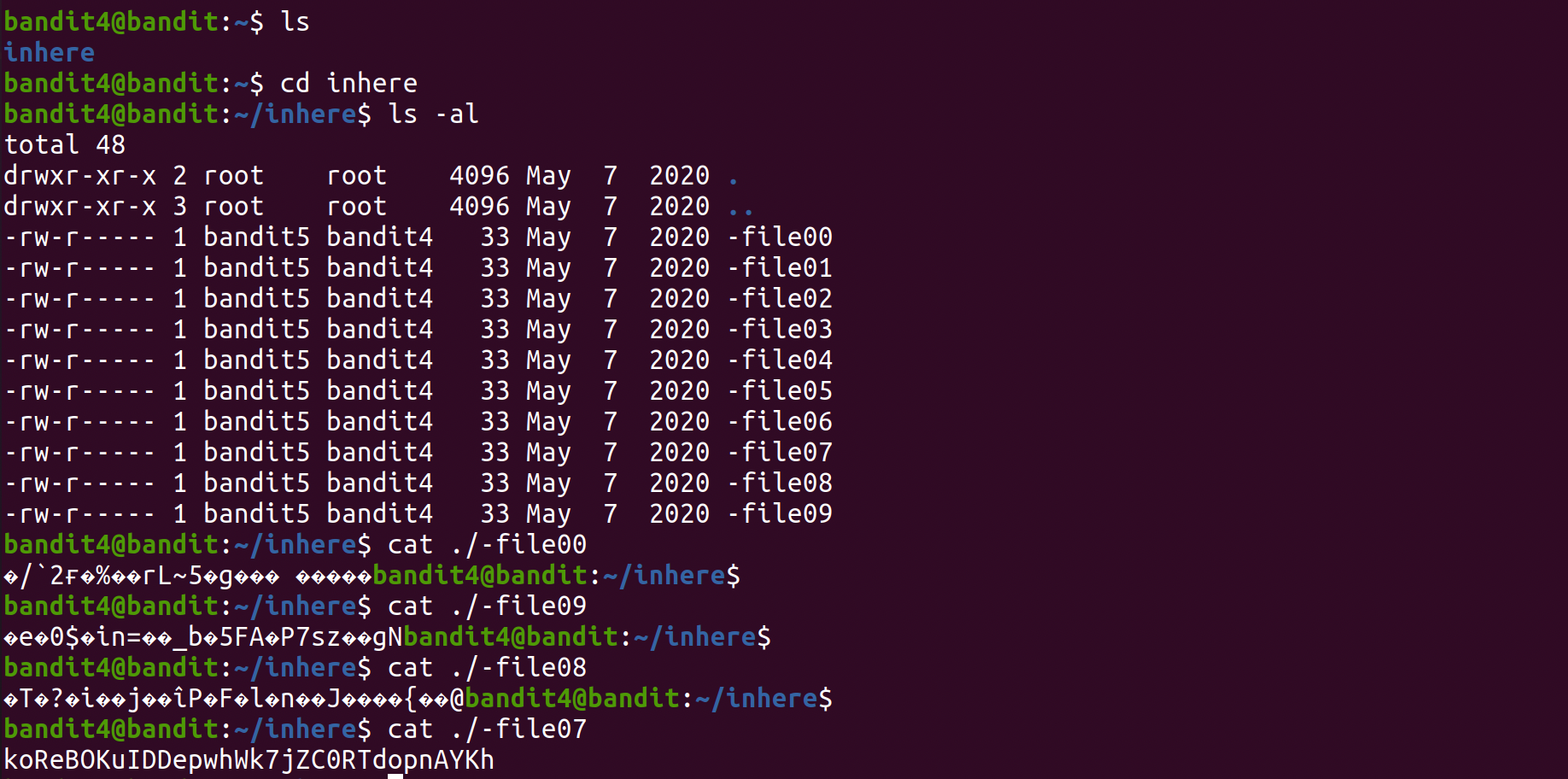 문제를 읽어보니 inhere 디렉터리에 사람이 읽을 수 있는 파일에 비밀번호가 있다고 한다.